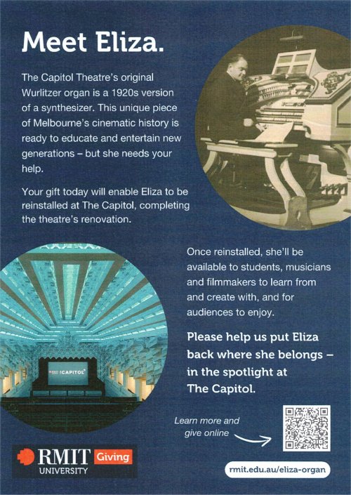 Information supplied by Neil C. Hunter and The Theatre Organ Society of Australia (Victorian Division) Inc
